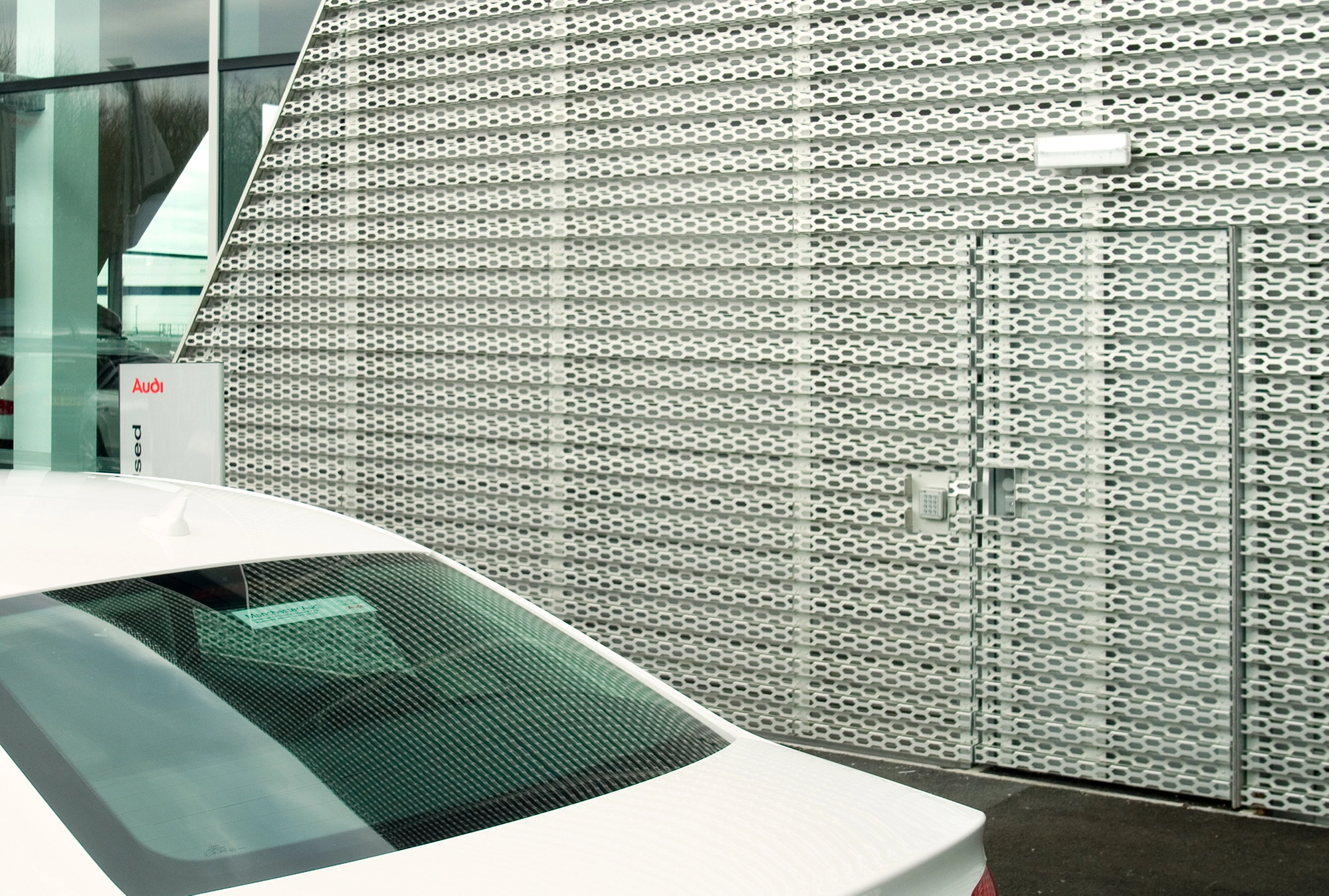 This meant the perforated cladding material could be fitted to the face of the door to minimise the visible lines of the doors. Standard Robust powder coated steel doors were also supplied.