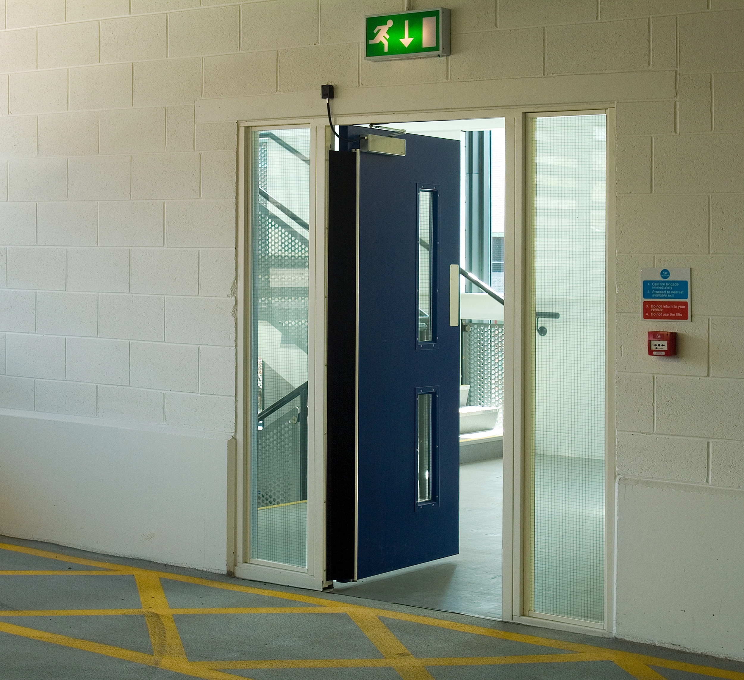In public buildings, such as car parks like these, doors must obviously comply with current legislation but special consideration must also be given to the public who are using them. As a result we were able to design and manufacture a range of doors, including supplying some that were designed to assist visually impaired users through the use of strong contrasting colours on the leading edge.