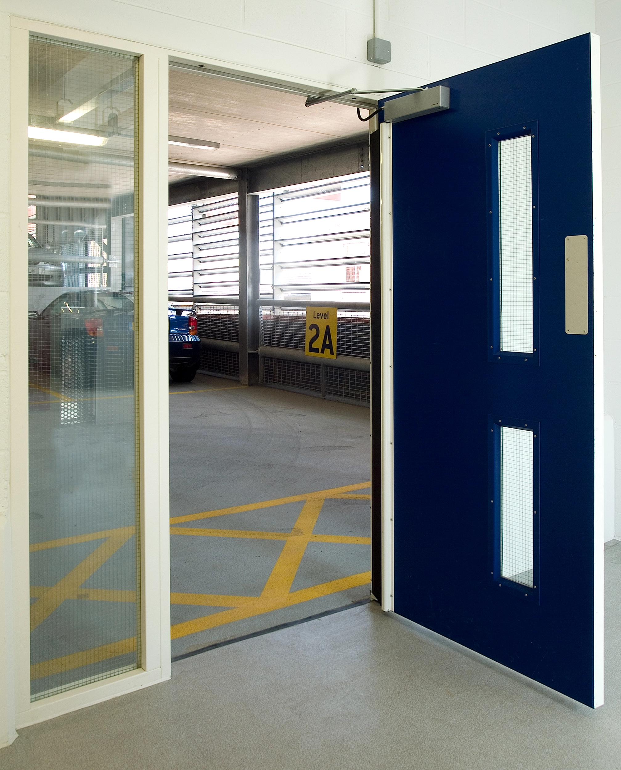 A number of doors were fitted with automatic door operators and had magnetic locks to hold them open until required to close during a fire alarm. A selection of doors were also incorporated into the car park’s access control system. The doors were integrated into the fire protection strategy, and also offered excellent perimeter security.
